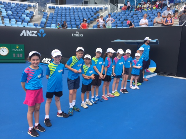 On Wednesday 18th January, it was Game, Set & Match as 10 of our ANZ Tennis Hot Shots juniors hit Show Court 3 at the 2017 Australian Open. The kids took part in a demonstration /exhibition of their skills for the general public/spectators. A fabulous experience for all – with lots of fun involved, along with the bonus of the children staying on at the AO to watch the day’s action on all the courts!